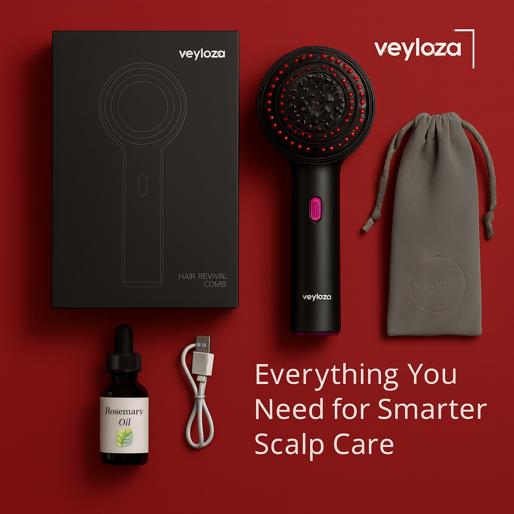Transform your hair care routine with the Veyloza Scalp Therapy Comb™. Featuring red light technology, gentle massage, and multiple kneading modes, it stimulates blood flow, reduces dandruff, and strengthens hair from the roots up. Relax while nourishing your scalp — and unlock the secret to thicker, healthier-looking hair